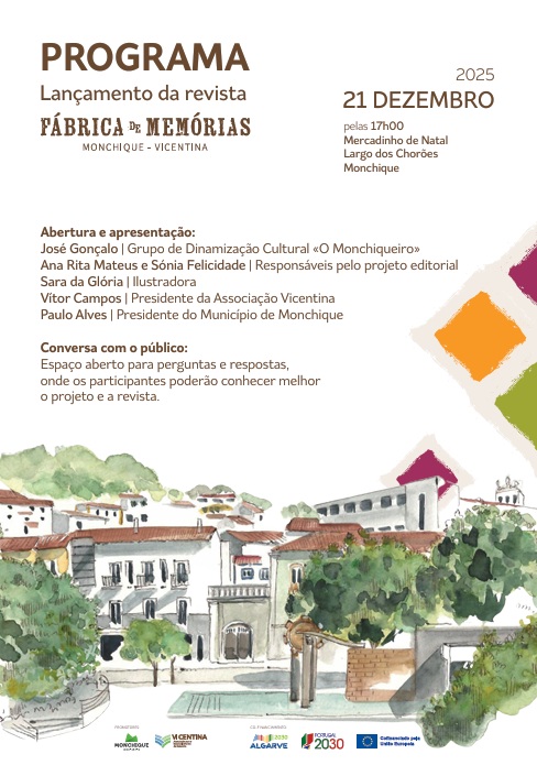 O primeiro número da Revista Fábrica de Memórias será lançado no próximo dia 21 de dezembro de 2025, pelas 17h00, no Mercadinho de Natal, no Largo dos Chorões, em Monchique.