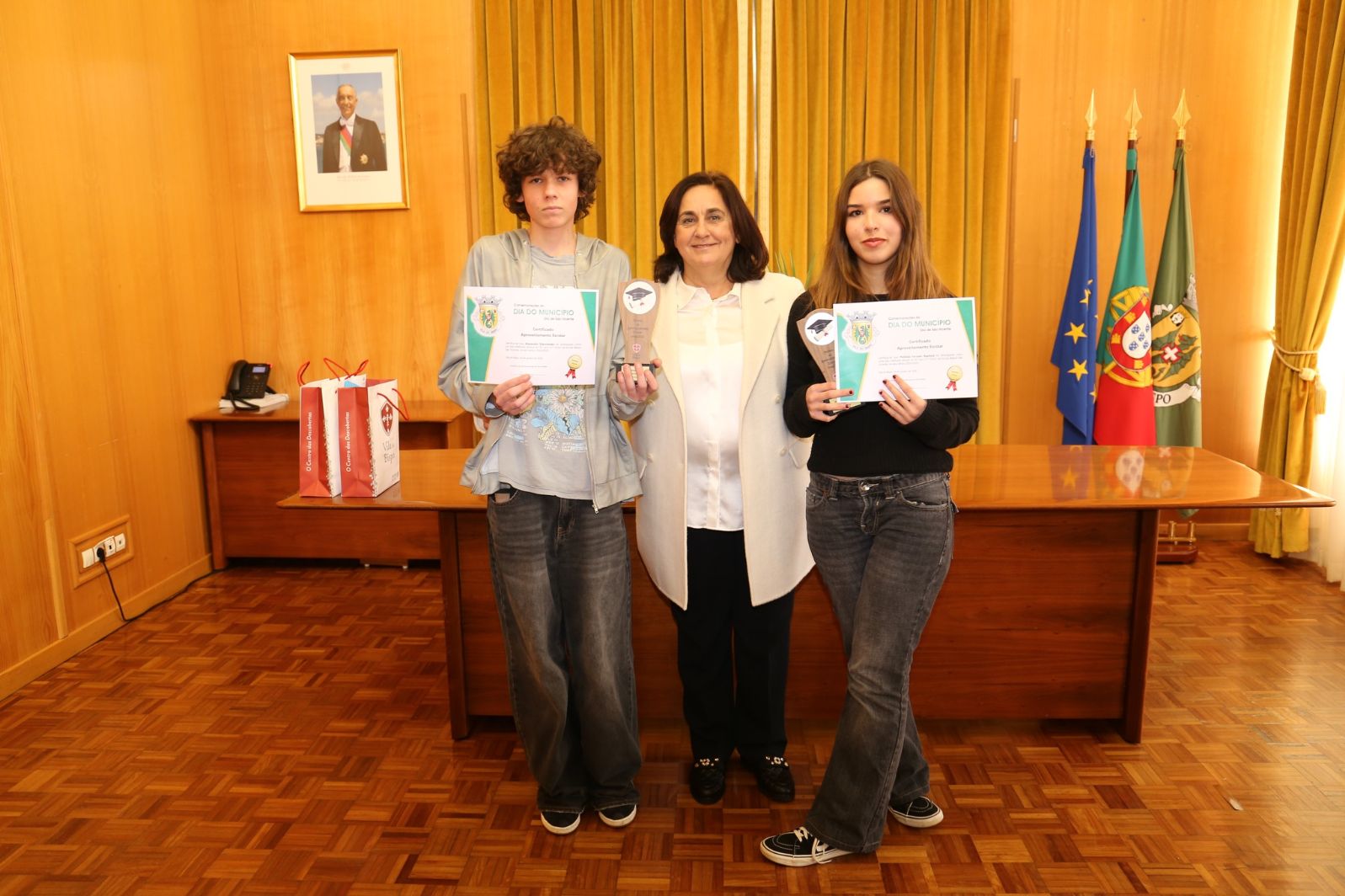 A sessão contou com a presença da presidente da Câmara Municipal, Paula Freitas, do presidente da Assembleia Municipal, José Marques, dos vereadores Luís Paixão, Rute Silva e Dora Guerreiro e da directora do Agrupamento de Escolas do concelho de Vila do Bispo, Carla Cunha, que procederam à entrega dos respectivos prémios.