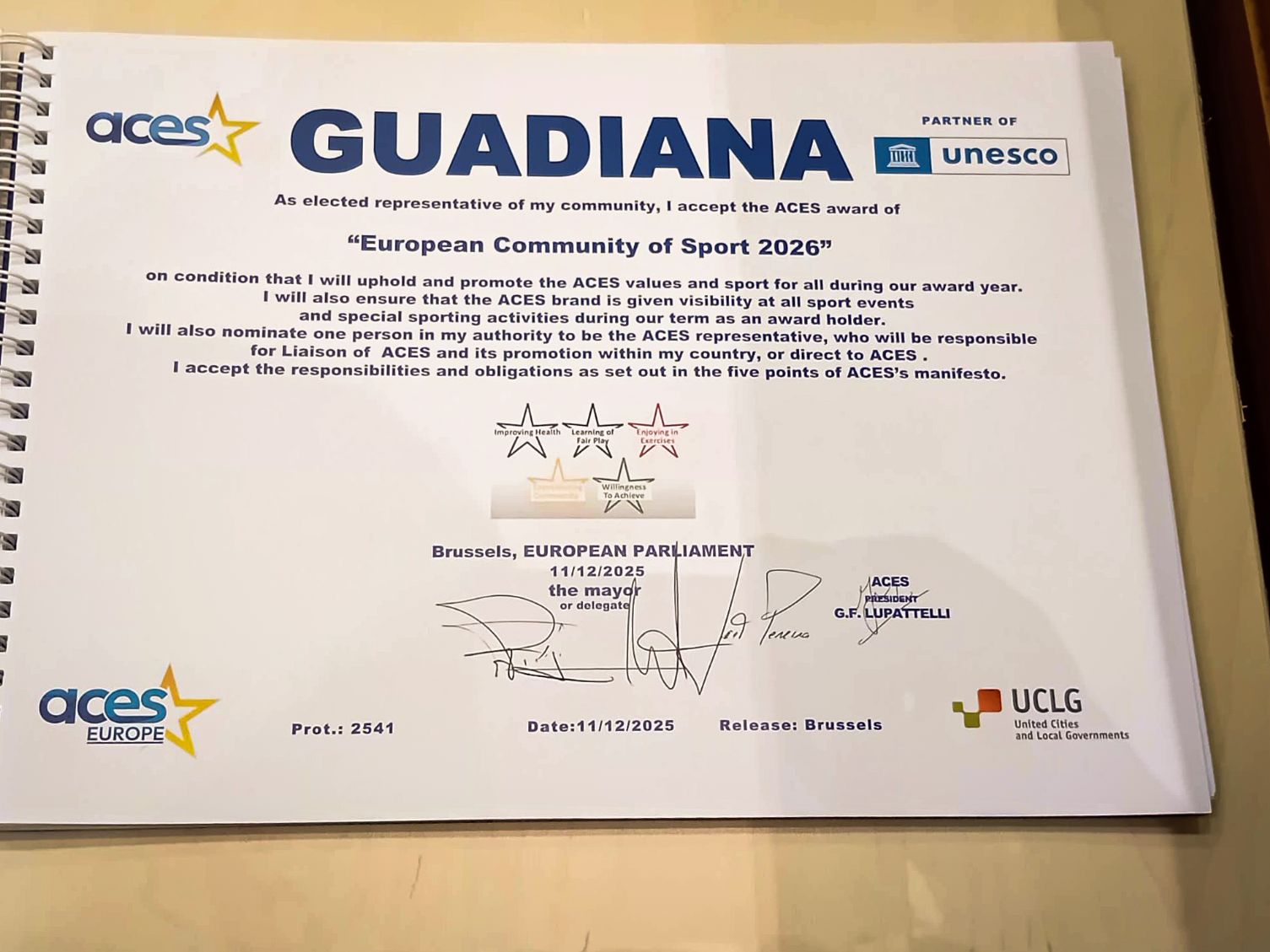 A cerimónia realizou-se no Parlamento Europeu, em Bruxelas, no âmbito da gala anual da ACES dedicada às Capitais, Cidades e Comunidades Europeias do Desporto.