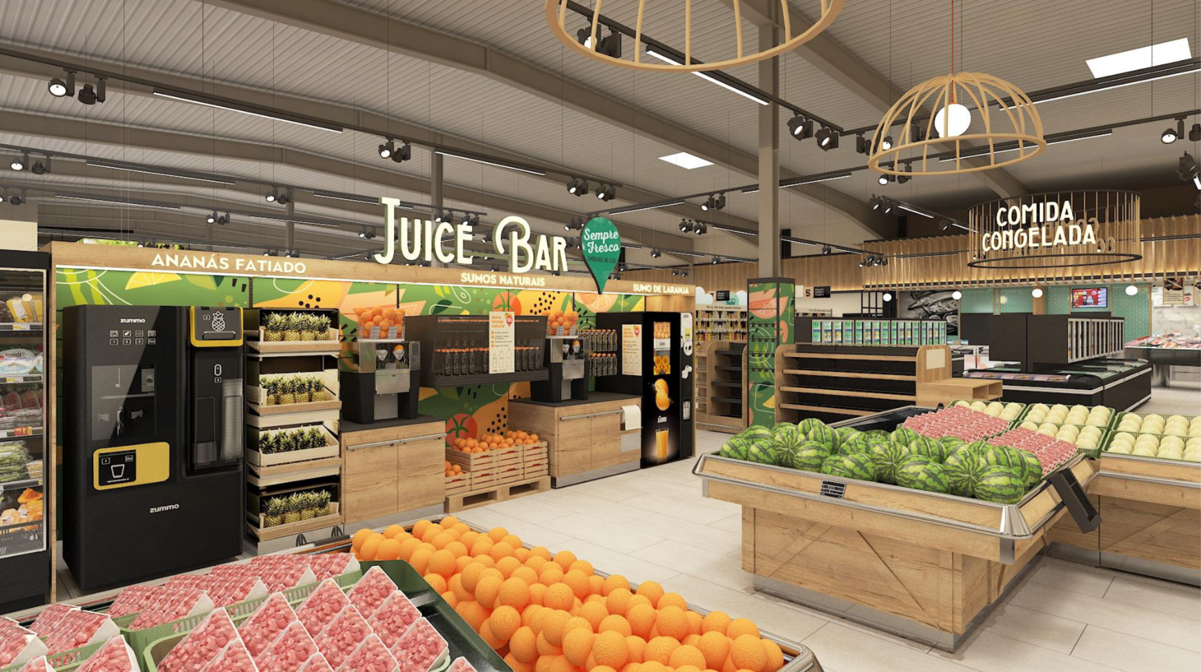 A loja passa a contar com uma área de frescos com cerca de 1800 metros quadrados, concebida para proporcionar maior conforto, melhor circulação e um aumento significativo da capacidade de produção própria, incluindo a duplicação de serviços como a zona de grelhados.